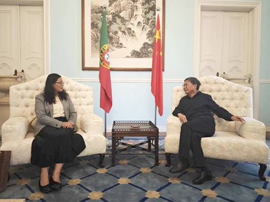 在讲座开始之前,张敏拜见了中国驻葡萄牙全权大使赵本堂,与赵大使就当前中欧合作、中葡关系、“一带一路”倡议下的中葡合作前景等进行了深入探讨。赵大使及使馆馆员等共40余人参加了本次讲座和研讨。