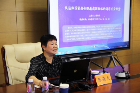 在讲座中,张海文研究员指出,海洋安全是总体国家安全观的重要组成部分。随后她从周边海洋安全态势、周边海洋争端和海洋作为战略空间的拓展方向三个方面全面梳理了我国当前及今后一段时期内面临或可能面临的海洋安全形势。张老师的讲座内容详实丰富、实践与理论相结合、深入浅出。