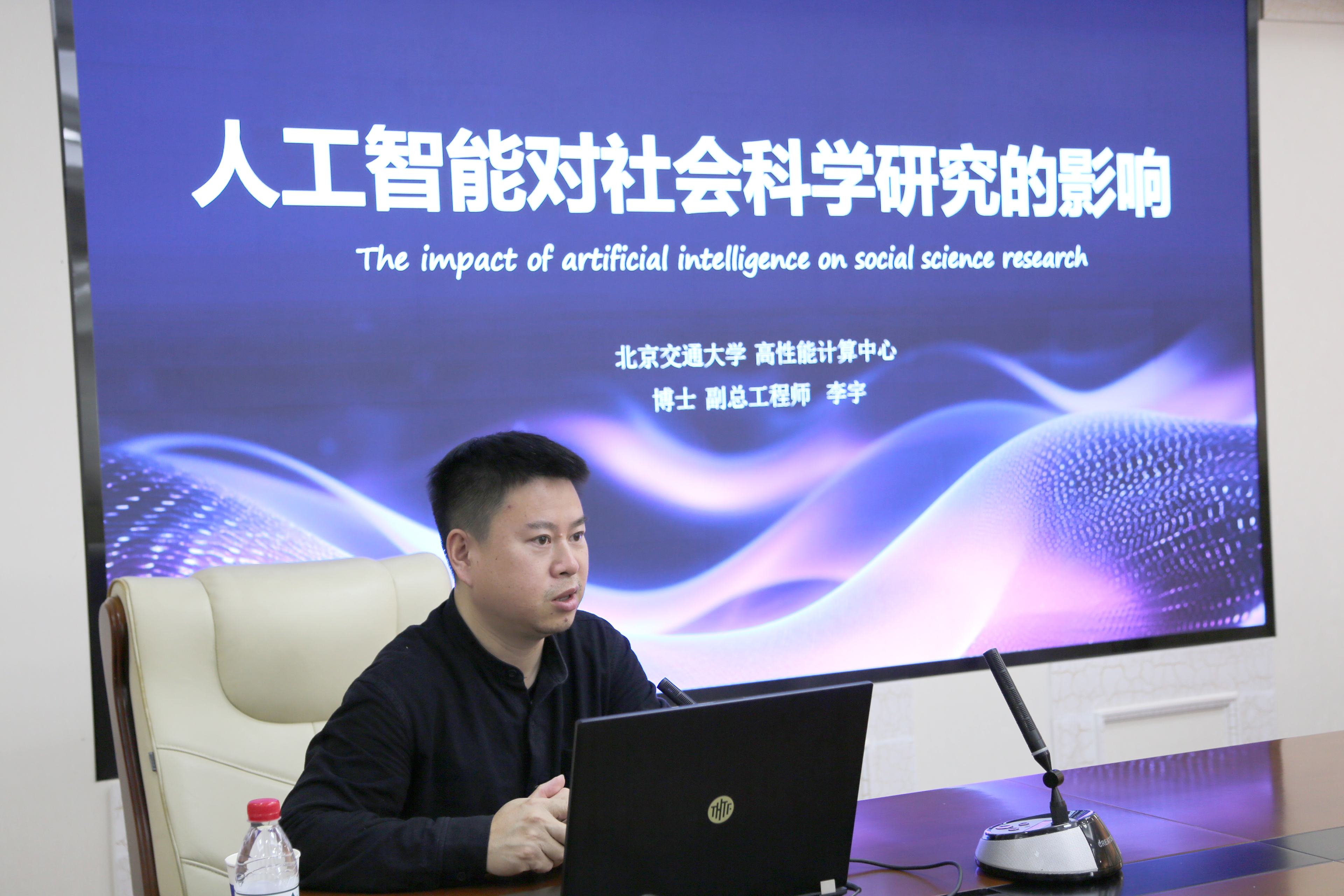 2025年3月19日下午,欧洲研究所青年讲坛第一讲成功举办。本次讲坛由北京交通大学高性能计算中心副总工程师李宇副教授主讲,主题是“人工智能对社会科学研究的影响”。欧洲研究所冯仲平所长主持,欧洲研究所党委书记公茂虹,纪委书记、副所长赵江林出席。所青年理论学习小组成员和部分科研人员参与讨论。