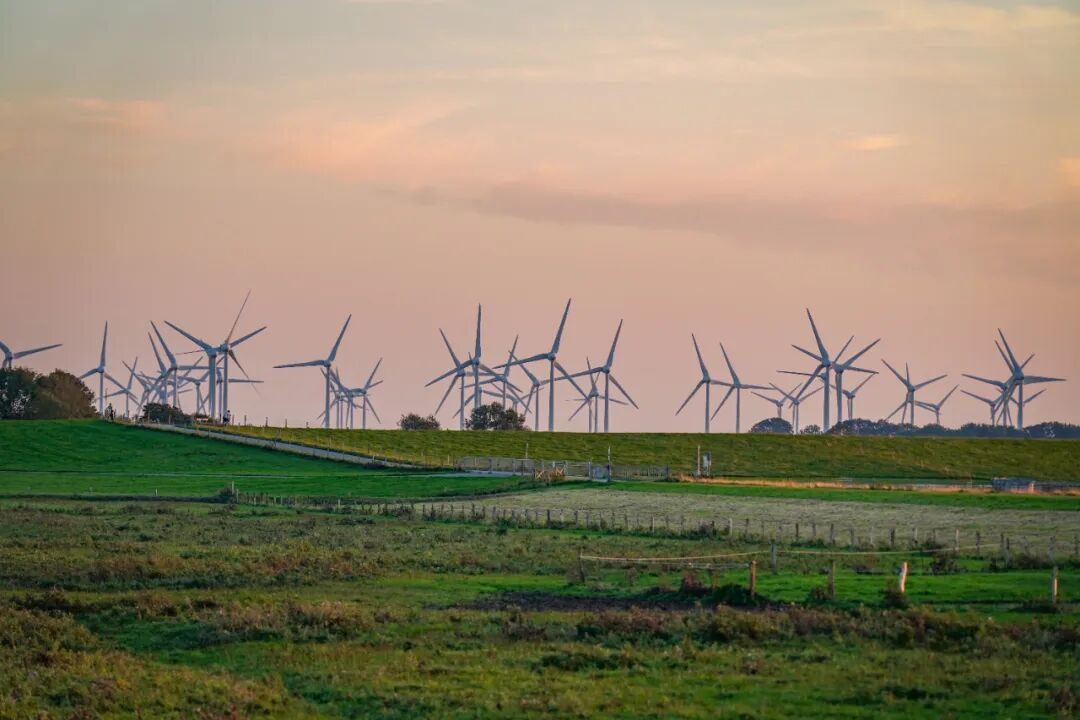 位于德国下萨克森州的多台风力发电机,该地区在可再生能源转型与气候保护方面成效显著。
