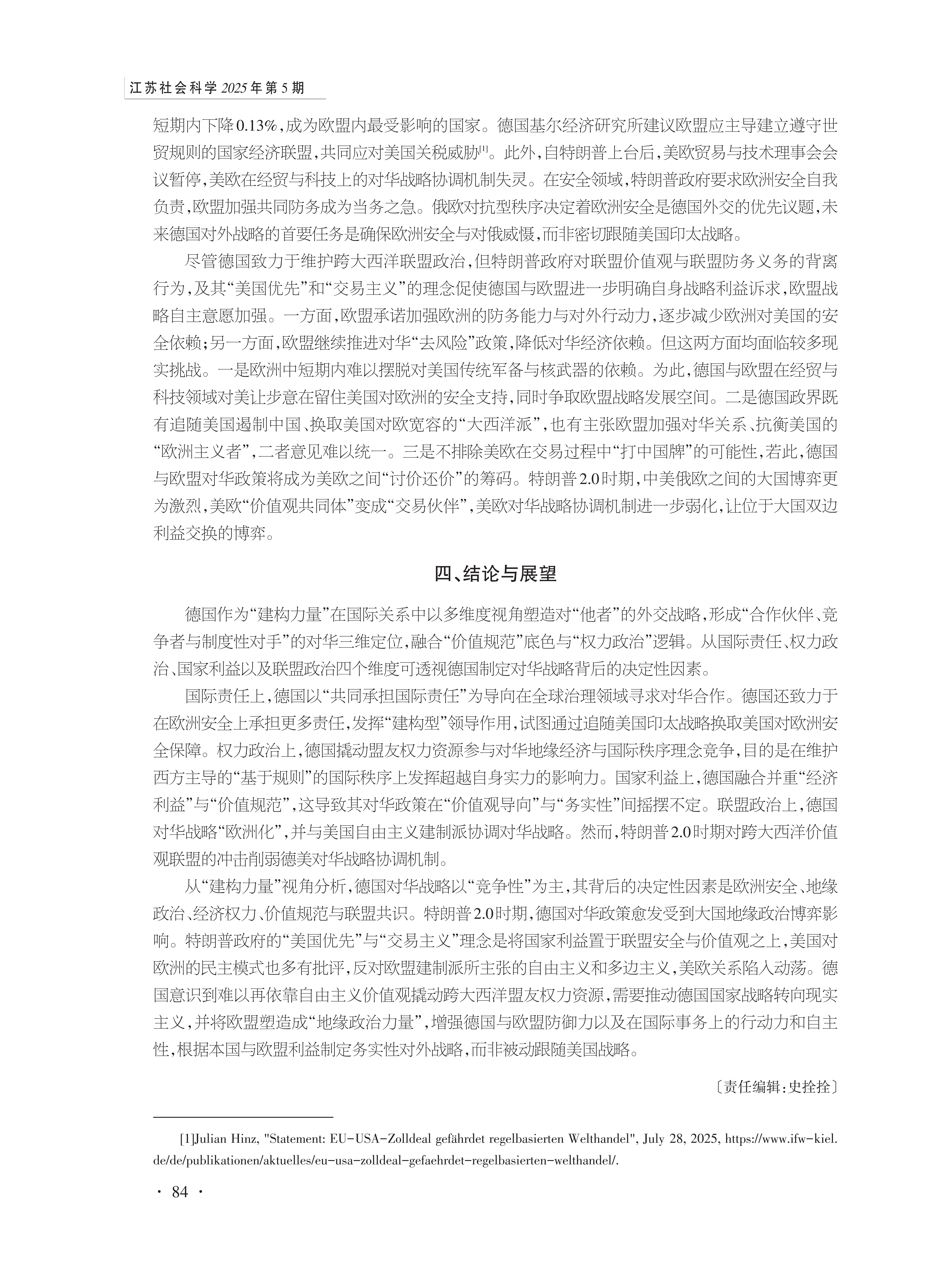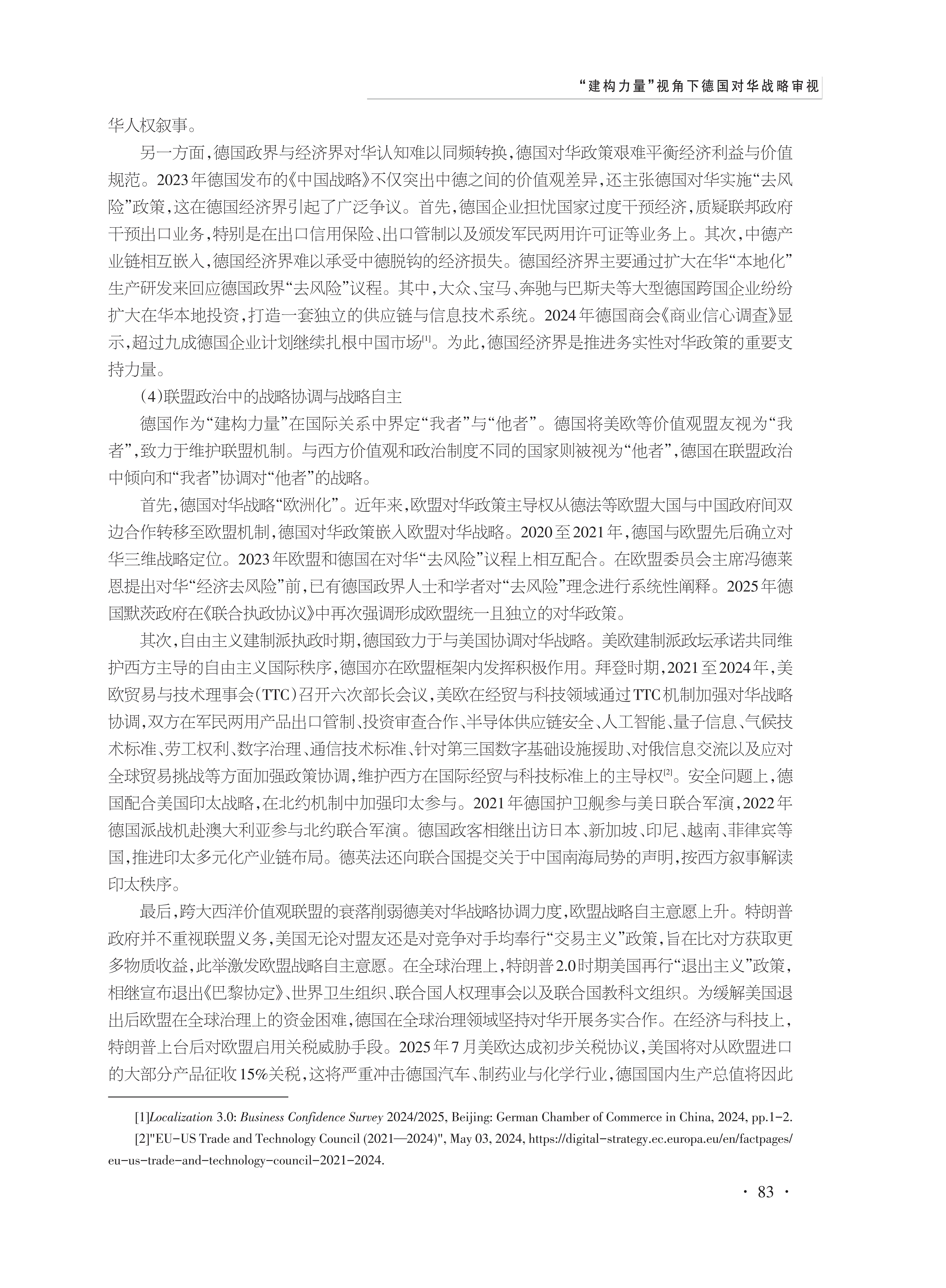 黄萌萌:“建构力量”视角下德国对华战略审视 2025-11-14 黄萌萌 《江苏社会科学》2025年第5期 0 作者简介:黄萌萌,中国社会科学院欧洲研究所副研究员。 文章来源:《江苏社会科学》2025年第5期。已获得作者授权。