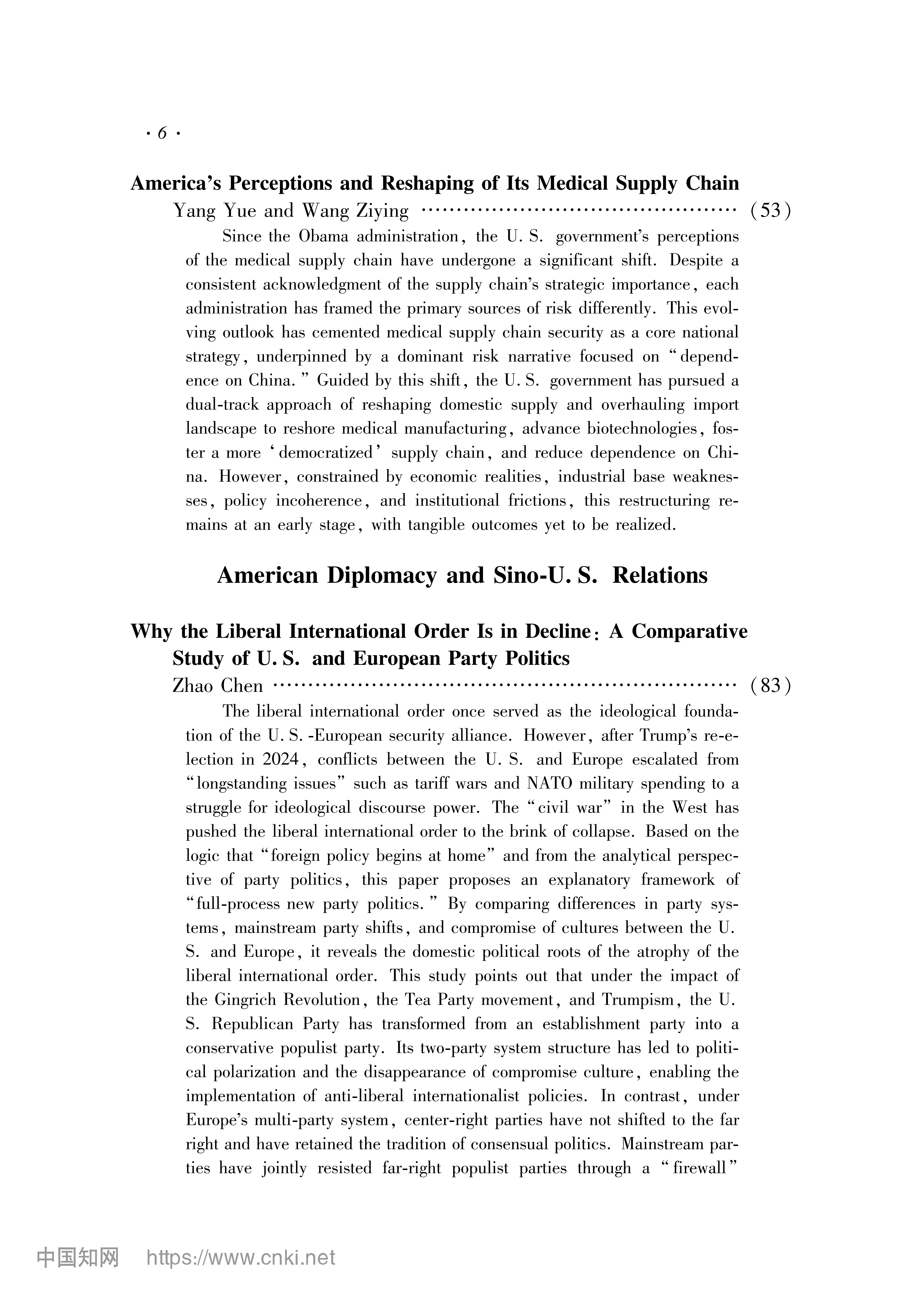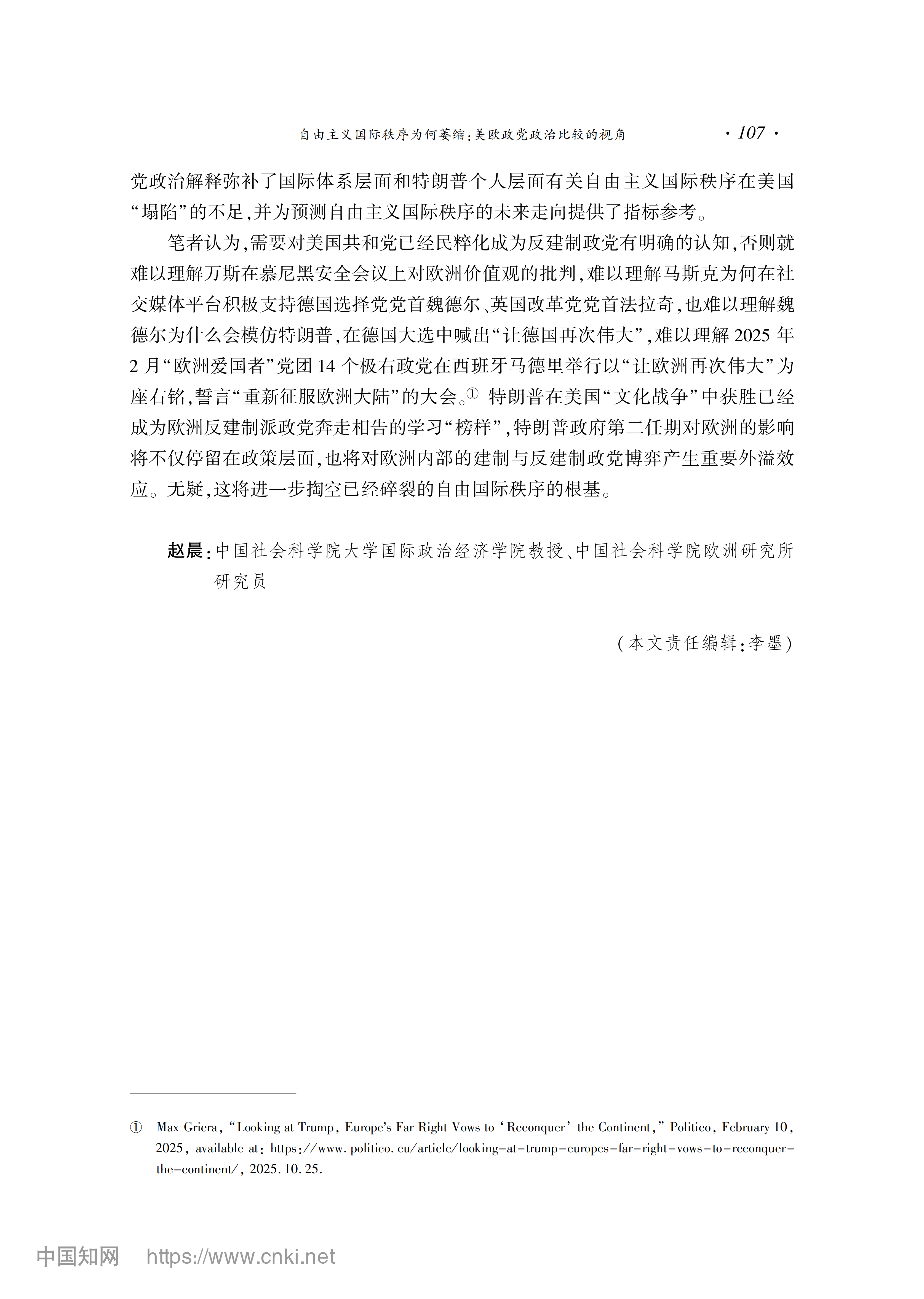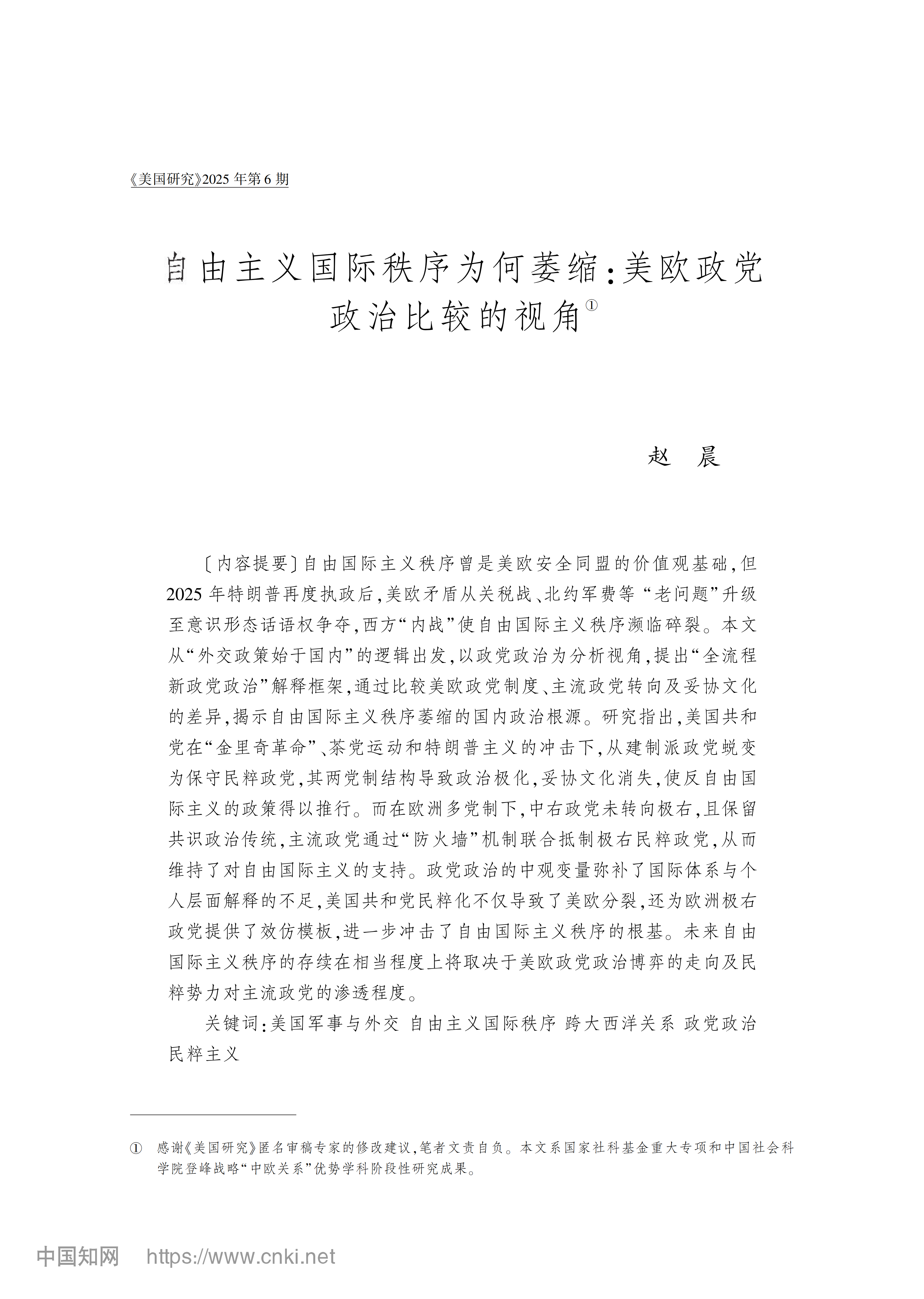 赵晨:自由主义国际秩序为何萎缩:美欧政党政治比较的视角 2026-01-28 赵晨 《美国研究》2025年第6期 0 作者简介:赵晨,中国社会科学院欧洲研究所国际关系研究室主任、研究员。 文章来源:《美国研究》2025年第6期。已获得作者授权。