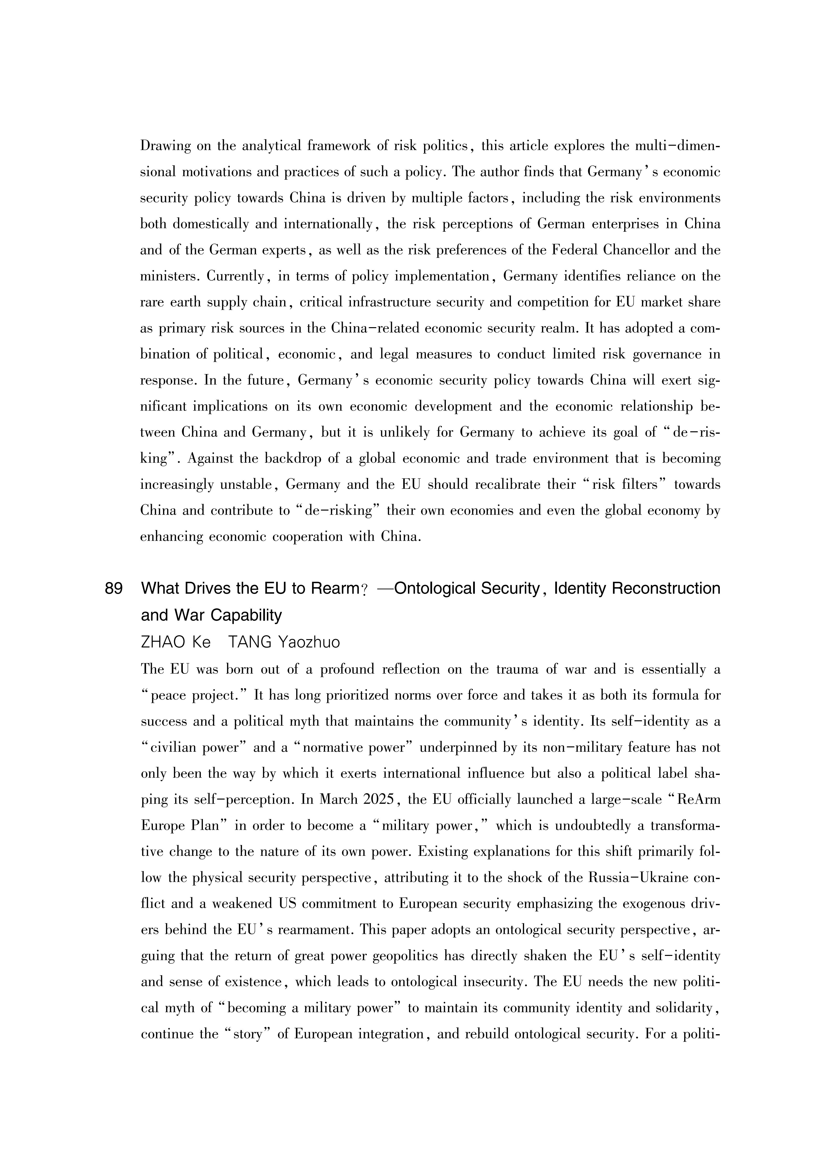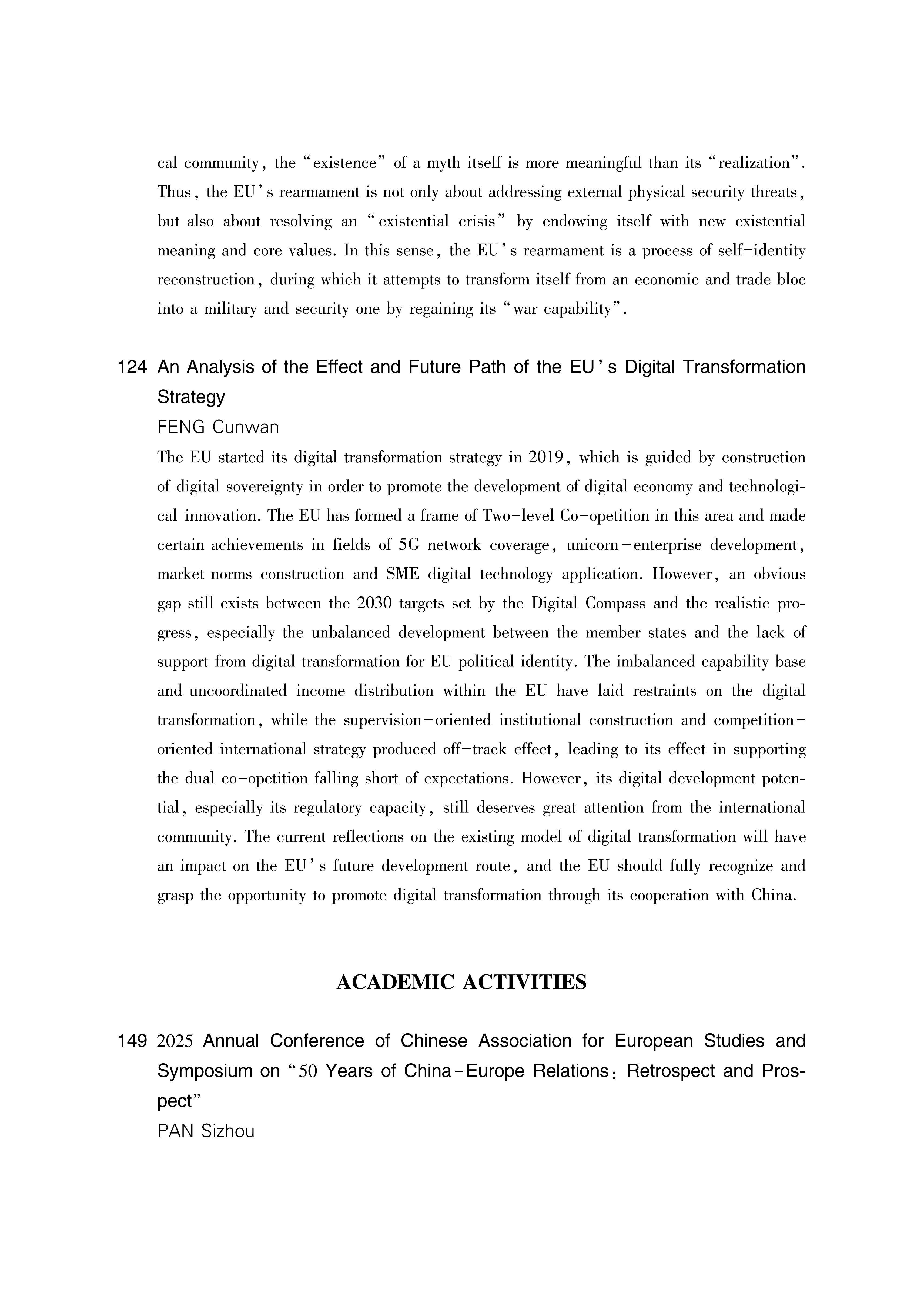 The Institute of European Studies of the Chinese Academy of Social Sciences (formerly the Institute of Western European Studies) was established in May 1981. It is a national research institute specializing in the study of European politics, economy, law, society, culture, history, international relations, and major power strategies.